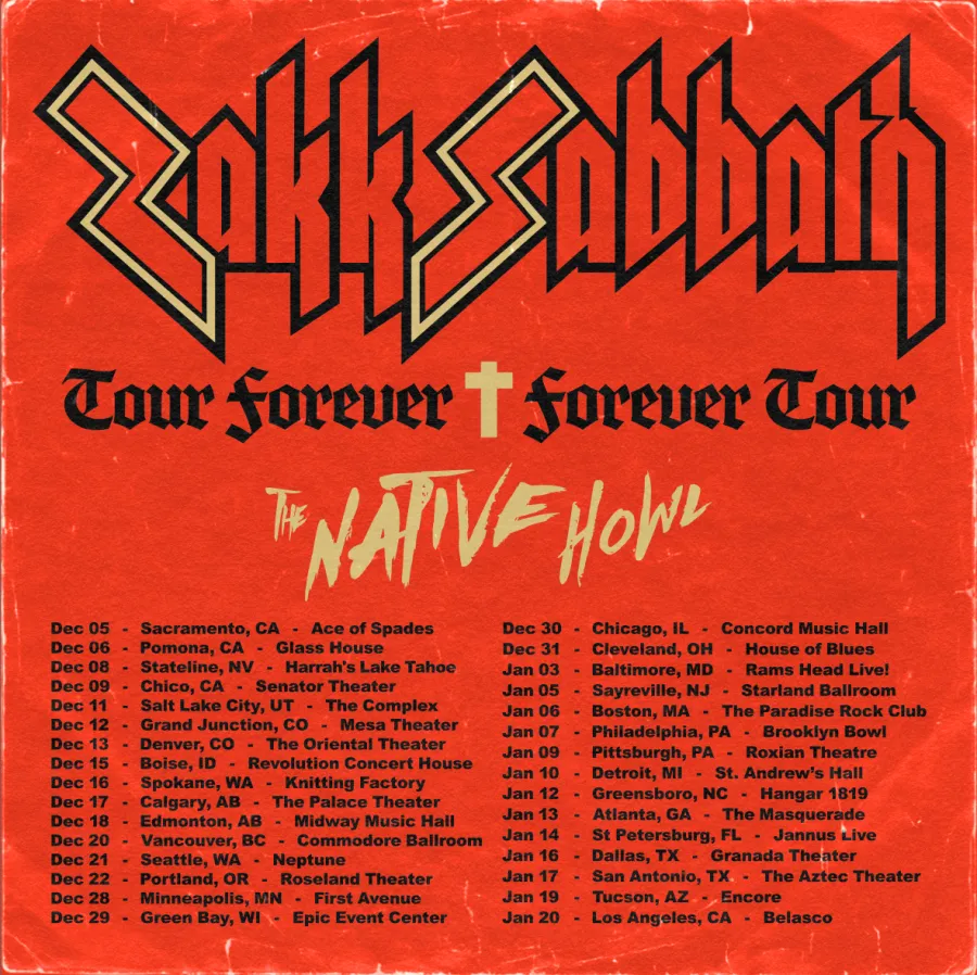 Source : www.facebook.comZakk Sabbath’s 2023 2024 North American Tour: See the Dates